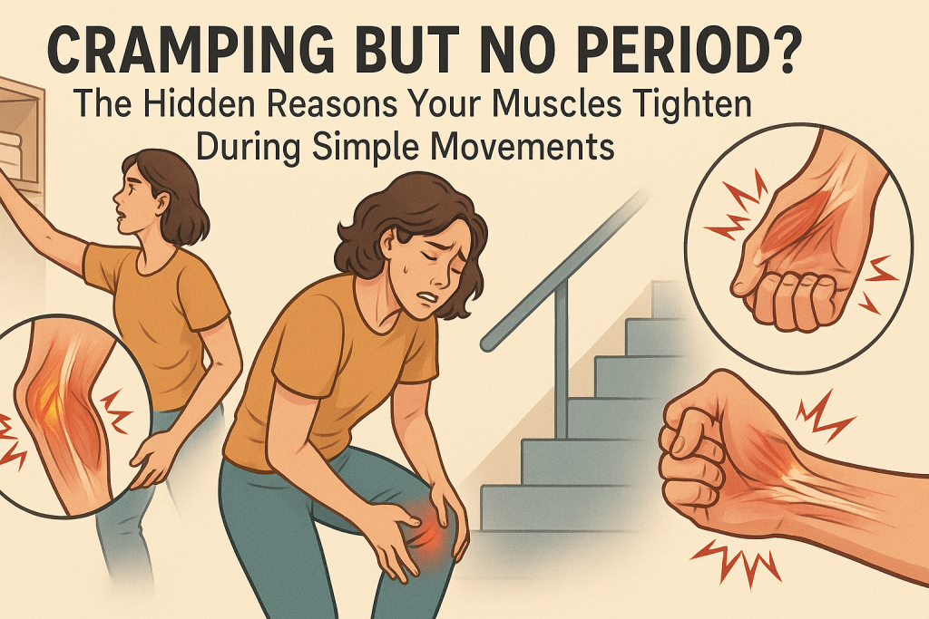 Do you ever feel cramping during simple activities like walking, stretching, or standing up? It can happen fast and catch you off guard. Many people assume it is menstrual related, only to realize they are cramping but no period is coming. This kind of cramping is very common, and most of the time, it has more to do with hydration, muscles, stress, or nutrients than with your cycle.