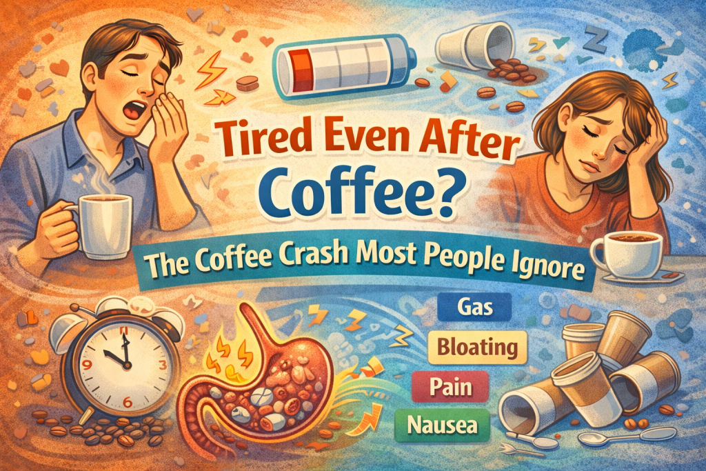 Coffee blocks the feeling of tiredness in your brain. It does not remove real fatigue. When the caffeine effect fades, the tiredness returns all at once. That sudden drop in energy is the coffee crash.